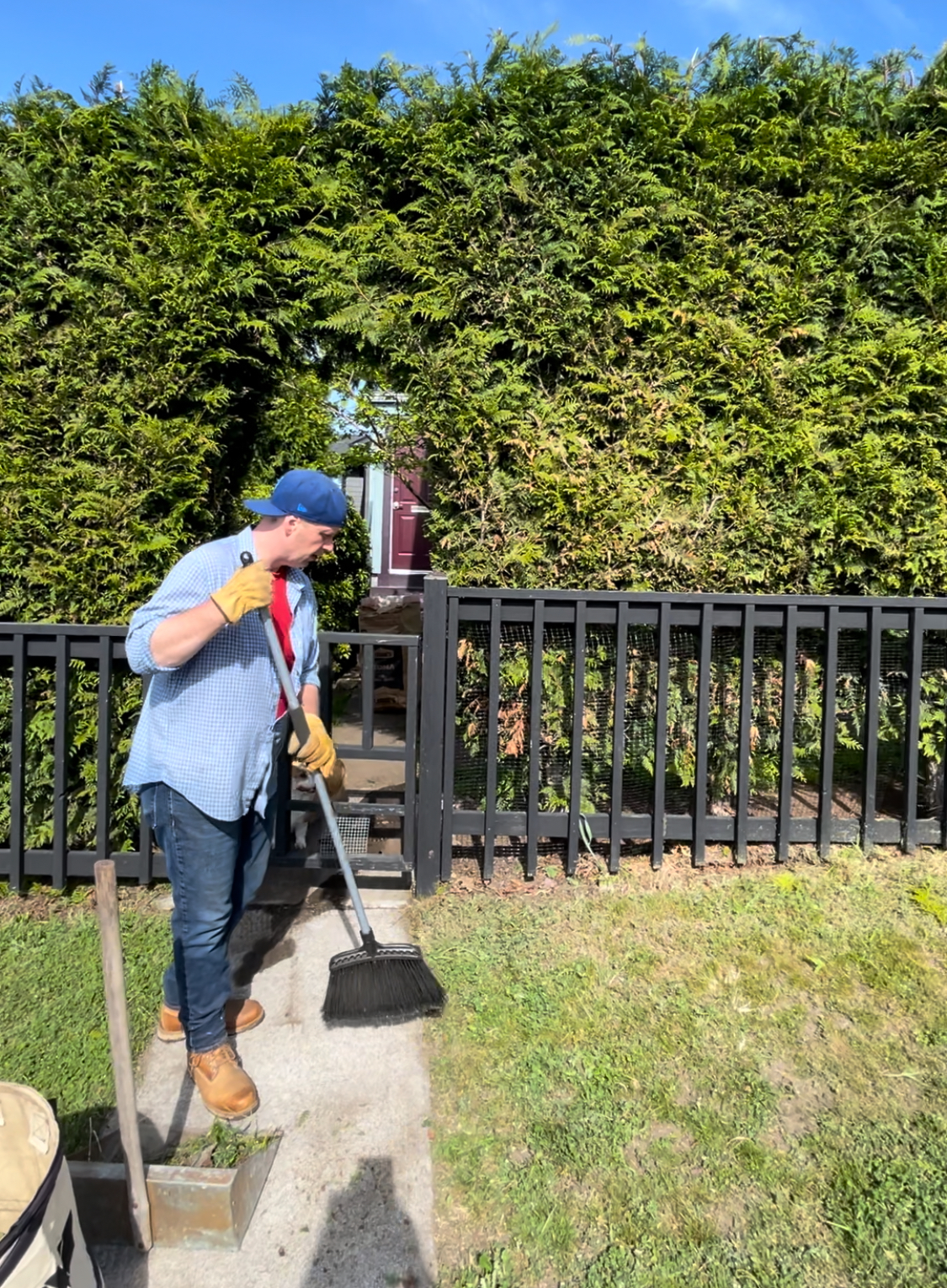 Here’s what we did: Christina got to work on leaf and weed removal, she loves to be in the garden and is a control freak, so tidying someone’s yard is a pleasure for her. We removed about 30 bags of leaves from the property and that included the large hedges that Nicky had pruned, providing privacy for this corner lot. Scroll down to see some before and afters…