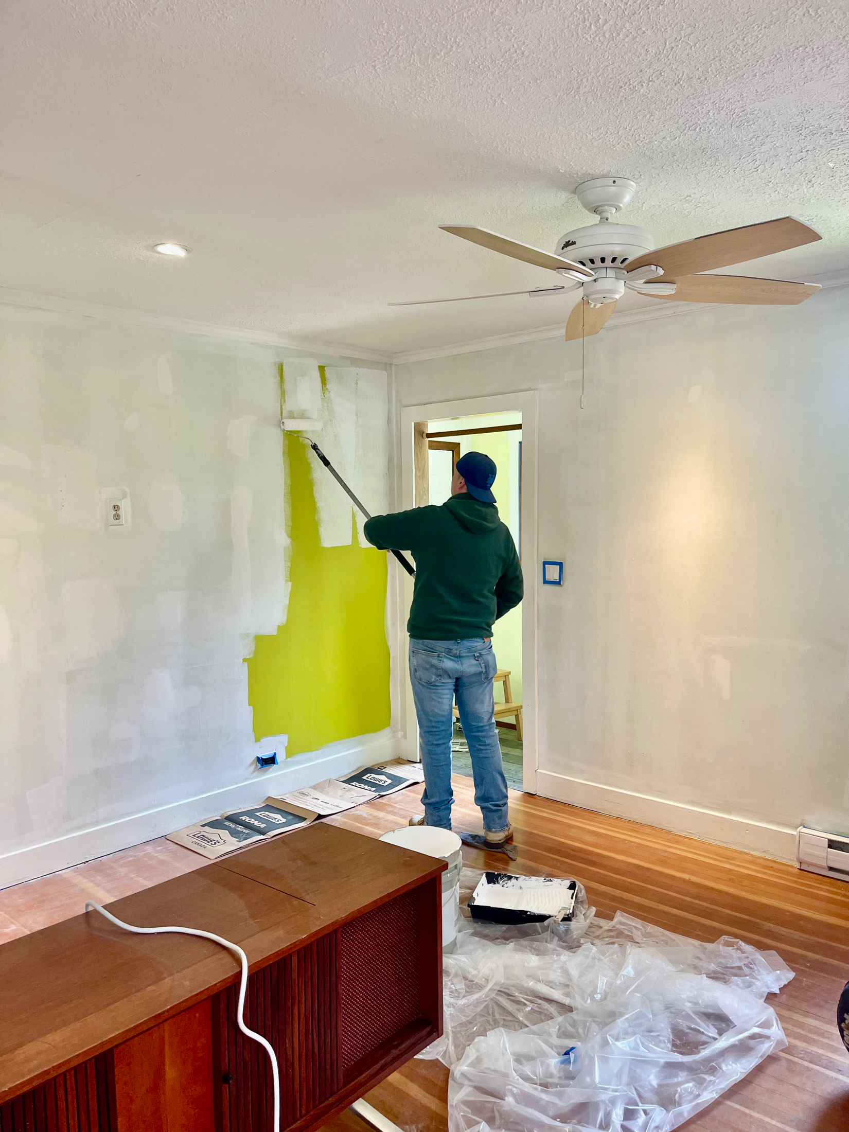 After we were done outside we got to work on the interior, Nicky removed some shelving and repaired all the walls in the entire house. This adorable house was just over 850 square feet but we still needed to give it a ‘New York turnover’ where all the walls are painted back to white or cream in every single room, ready for the new owners to move right on in. Nicky painted every room but the small hallway and the garage, so it was a fair job. He also caulked all of the baseboards and trim for a crisp and tidy paint job. After he was done Nicky went around to the doors and trim and painted them in a semi-gloss white. The results are awesome!