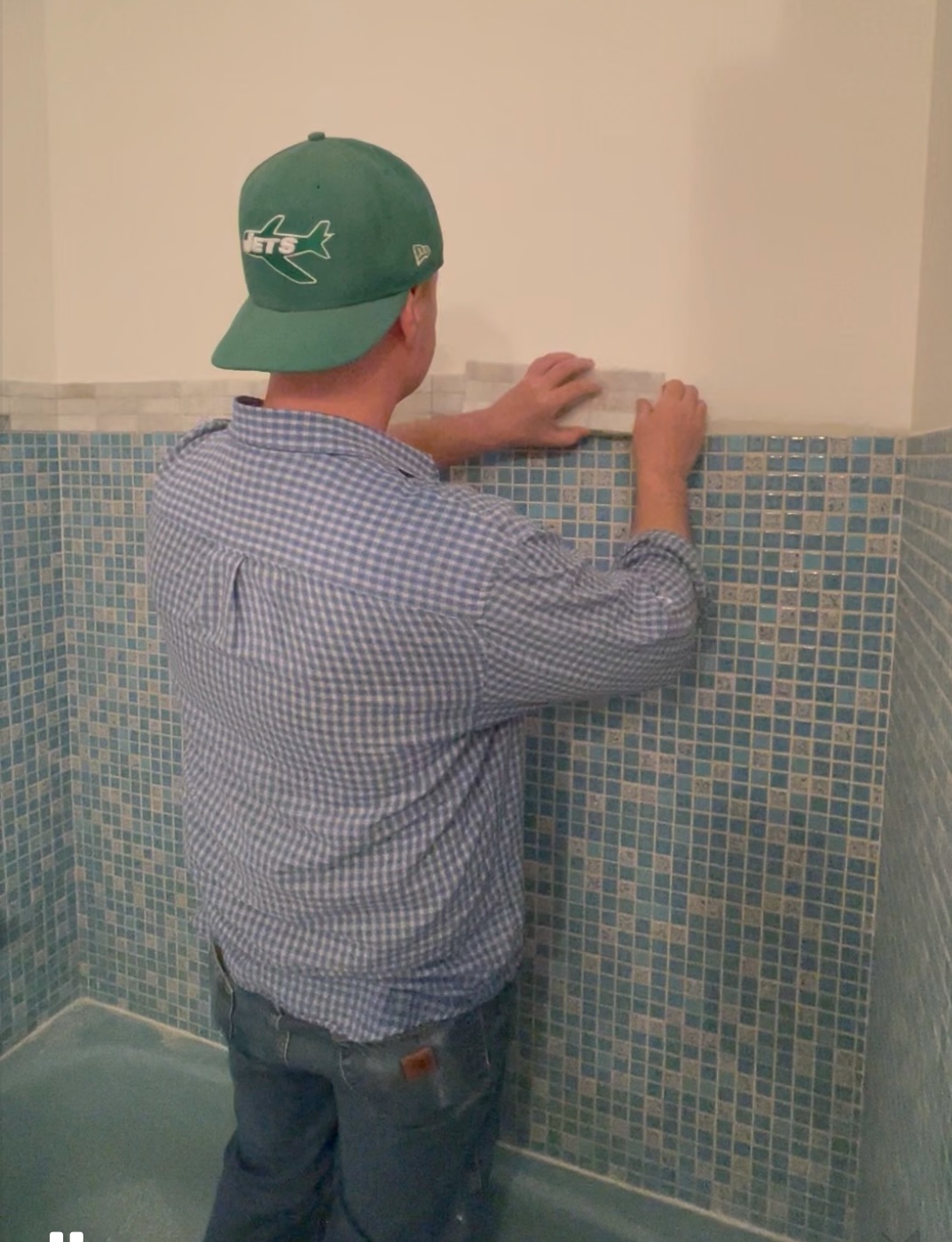 We added some marble tile and added some more 1×1 tile to extend the tiled area to a more modern height.