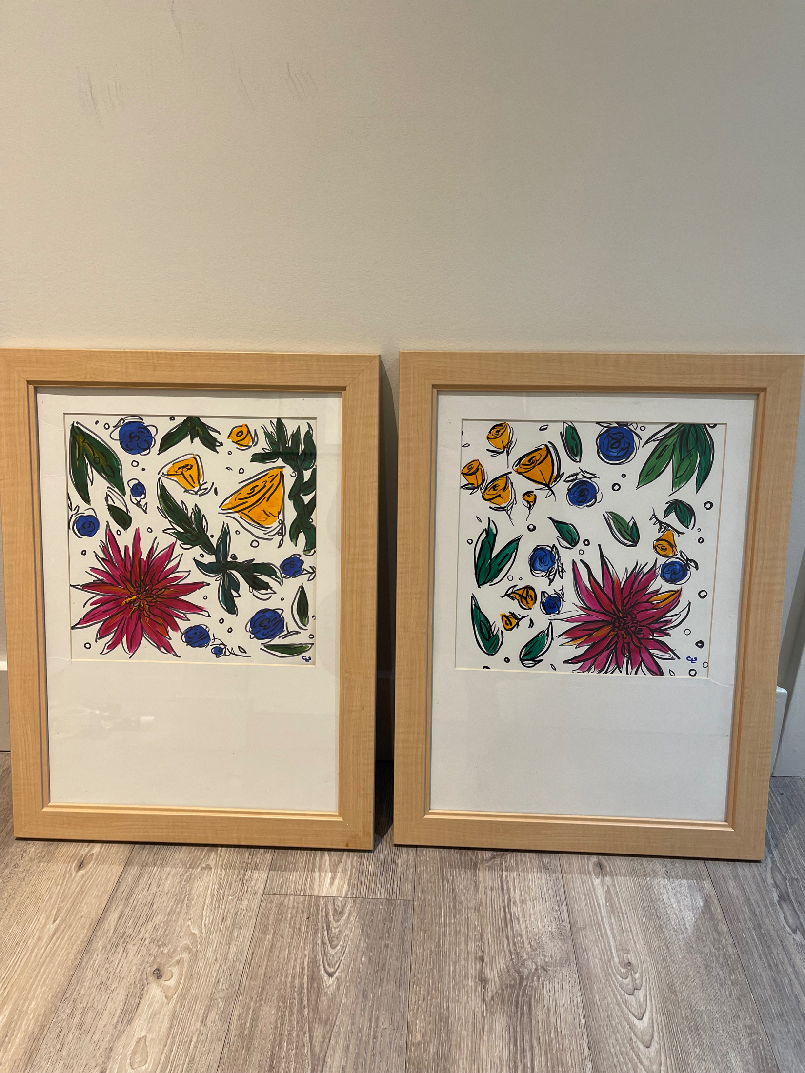 Inspired by the garden views, Christina painted the art work that hangs in the kitchen.